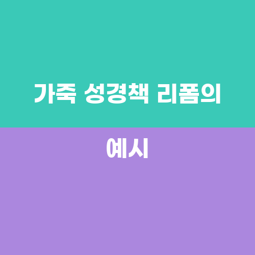 또 다른 예시로는 전통적인 흑색 가죽 성경책을 리폼하여 파스텔 컬러의 가죽 성경책으로 만들어보겠습니다. 이 파스텔 컬러의 가죽 성경책은 부드러운 느낌을 주면서도 화사하고 경쾌한 느낌을 줄 것입니다. 이를 통해 성경을 읽는 과정이 더욱 편안하고 즐거운 경험이 될 것입니다.
