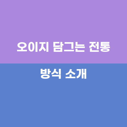 한국의 전통 음식 중 하나인 오이지는 오이를 소금에 절여 만든 간장이나 고추장 등과 함께 먹는 음식입니다. 오이지는 한국인들에게 익숙한 맛이지만, 요즘에는 편의점에서 쉽게 구매할 수 있는 만능간장이나 고추장이 많이 판매되고 있어서 집에서 만드는 사람들이 줄어들고 있습니다. 하지만 오이지를 직접 만들어보면서 전통적인 방식으로 만들어 보는 것도 나름의 재미가 있습니다. 오이지를 담그는 전통 방식은 오랜 역사와 전통을 가지고 있어서 맛 또한 다르다고 할 수 있습니다.