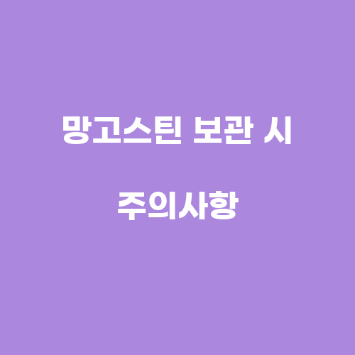 망고스틴을 보관할 때에는 몇 가지 주의사항을 지켜야 한다. 먼저 망고스틴을 세척할 때에는 깨끗한 물을 사용하여 세척해야 하며 물기를 제거한 후 보관해야 한다. 또한 망고스틴을 보관할 때에는 다른 식품과 격리하여 보관해야 하며 망고스틴을 보관하는 용기나 비닐봉투 등도 깨끗하게 관리해야 한다.