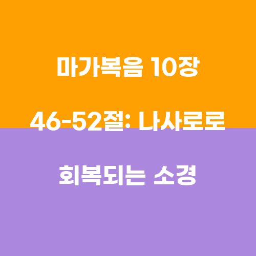 마가복음 10장 46-52절은 예수님의 능력과 사랑을 보여주는 중요한 구절들 중 하나입니다. 이 장에서는 나사로로 불리는 소경이 예수님을 믿음으로 인해 시력을 회복하는 이야기가 담겨져 있습니다. 이는 예수님의 능력과 은혜가 어떻게 믿음을 통해 이루어지는지를 보여주는 좋은 사례입니다.