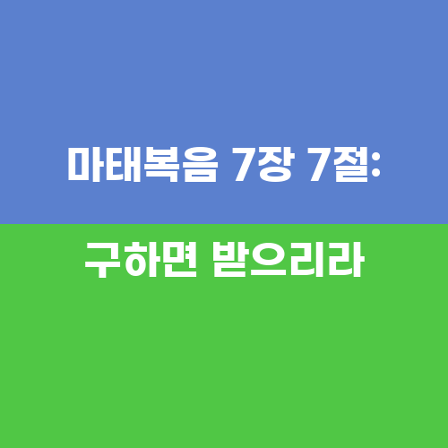 마태복음 7장 7절은 믿음과 기도의 중요성에 대한 교훈을 담고 있습니다. 우리가 하나님께 구하는 마음이 있다면 언제든지 받을 수 있다는 약속은 믿음과 기도의 중요성을 강조하는 것입니다. 믿음과 기도는 우리의 영성적인 삶에서 중요한 요소이며, 하나님과의 교제를 강화시키는 수단으로 사용되어야 합니다.