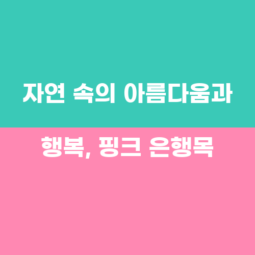 핑크 은행목은 자연 속에서 우리에게 아름다움과 행복을 선사하는 나무입니다. 이 나무는 우리의 마음을 편안하게 해주며, 자연 속에서의 아름다움을 느끼게 해줍니다. 그래서, 우리는 이 아름다운 핑크 은행목을 통해 자연 속의 행복을 느끼고, 삶을 즐겁게 살아가야 합니다.