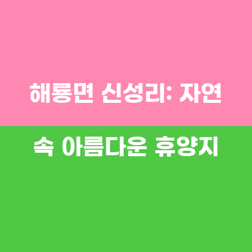 - 해룡면 신성리의 주요 관광 명소로는 해룡산, 한옥마을, 산책로 등이 있으며, 자전거 도로나 트레킹 코스도 인기가 있습니다.